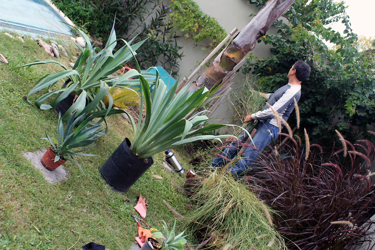 29) Segunda replantación. Nos aburrimos de las gramíneas al lado de la palmera y decidimos por las cactáceas! Y pensar que el fondo era para descansar!!