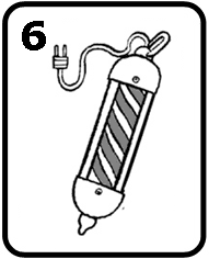 Hemos visto este objeto principalmente en películas antiguas, en la puerta de las desaparecidas "barberías". Consiste en un cilindro, encerrado en una cápsula transparente, con un diseño en forma de hélice que lo recorre, por lo general rojo. Al girar provoca la ilusión de que las rayas suben. Por su carácter hipnótico y fálico podríamos considerado el abuelo de la lámpara de lava (Ver "Coso n° 3"