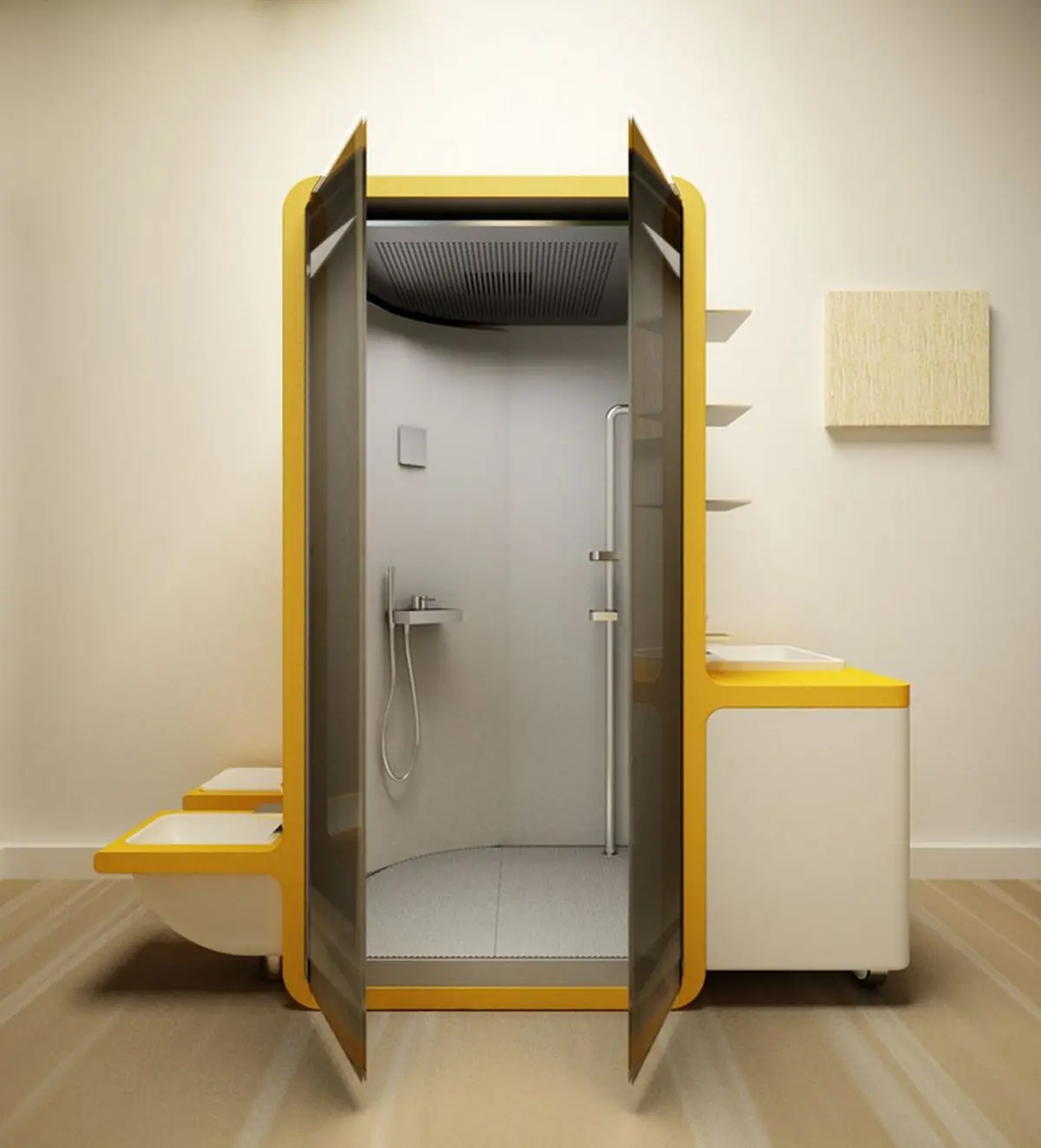 Fresco diseño un revolucionario baño all in one que incluye en un mismo sistema inodoro, ducha y lavabo.