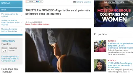 El portal recientemente lanzado TrustLaw, tiene como objetivo ser “un centro mundial para la asistencia jurídica gratuita, y un concentrador de noticias e información en materia de lucha contra la corrupción, la violencia y derechos legales de la mujer”.