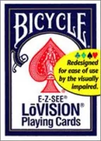 - LoVISION: Estas cartas están diseñadas para facilidad de empleo en personas con deficiencias visuales. Presentan palos con clave de color (cada palo tiene su propio color, junto con los colores tradicionales) y palos enormes.
