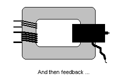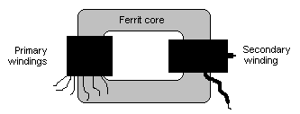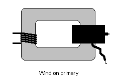 Ahora te has quedado con el secundario, aunque se ve inocente, es capaz de generar miles de voltios. Para hacer la prueba de su funcionamiento, simplemente envuelve unas 10 espiras de alambre esmaltado (el que tengas a la mano) y conecta y desconecta a una batería de 9 voltios u otra fuente de poder y verás saltar una chispa cada vez que hagas esto, no es necesario que te diga que si tocas las terminales del secundario recibirás un desagradable choque.