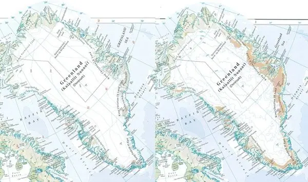 Los editores y encargados de Times Comprehensive Atlas of the World una empresa de atlas mundialmente conocido. Ha sacado en su último ejemplar una reconstrucción cartográfica de la situación actual de Groenlandia.