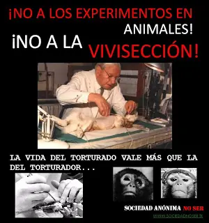 La palabra vivisección , del latín "vivus" (vivo) y "secare" (cortar), describe todas las torturas imaginables que sufren millones de animales -por lucro, curiosidad o ignorancia- en experimentos pseudocientíficos, carentes de fiabilidad y rigor científico, realizados en los miles de laboratorios de todo el mundo que forman parte del lucrativo negocio de las industrias médicas, farmacéuticas, veterinarias, laboratorios de toxicología y cosmética, y universidades o centros de enseñanza donde -a puerta cerrada- científicos, cirujanos, químicos, psicólogos, veterinarios, y sus equipos de técnicos, asistentes y estudiantes, practican la vivisección o disección de animales al margen de la opinión pública, perpetrando -supuestamente en nombre de la ciencia, la salud, o la educación- un holocausto de increíbles proporciones.