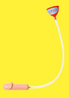 Es un bebedor, se hecha el liquido por el embudo y se bebe del otro extremo