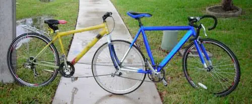 Es un invento casero, solo necesitas mucha maña, paciencia, un par de bicicletas, una cadena extra y lo típico, tornillos tuercas y herramientas para convertir esas dos viejas bicicletas en una sola.