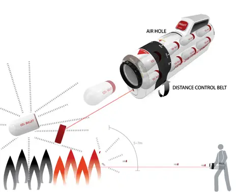 Pistola para apagar El fuego, sus balas contienen CO2 que lo extingue en un segundo
