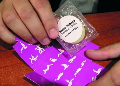 Preservativo con mini catalogo de posturas sexuales