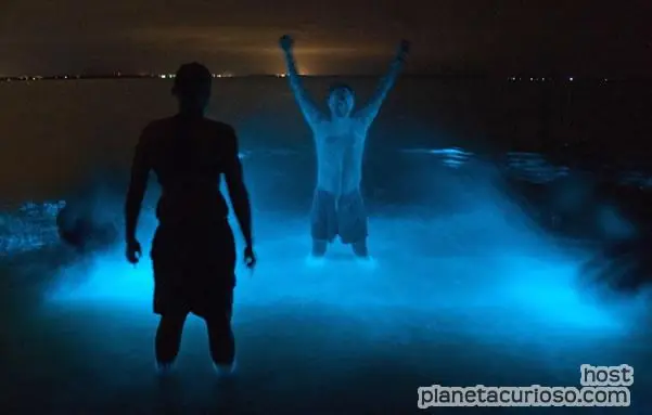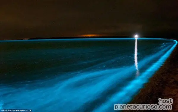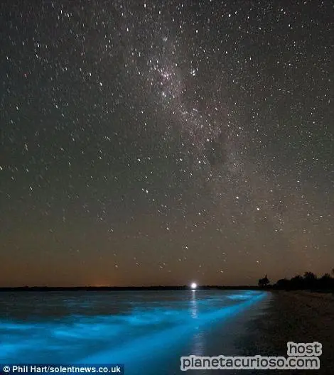 El lago que brilla en la oscuridad está en Gippsland, Australia. ¿Por qué brilla? La luz que despide el lago se debe a una reacción química conocida como bioluminiscencia, que es la producción de luz de ciertos organismos vivos, que se altera en el agua.