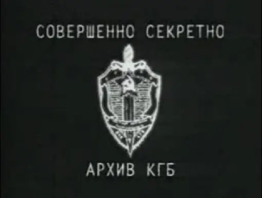 La imagen sin los rayones, con el emblema al centro, nos permite leer: “СОВЕРШЕННО СЕКРЕТНО” (TOP SECRET - Ultrasecreto), “АРХИВ КГБ” (KGB ARCHIVES - Los Archivos de la KGB), que traducido al español nos da el título de una conocida serie de televisión presentada por Roger Moore, titulada “Los Archivos Secretos de la KGB”, teniendo varios temas en diferentes programas dedicados a la Agencia Rusa.