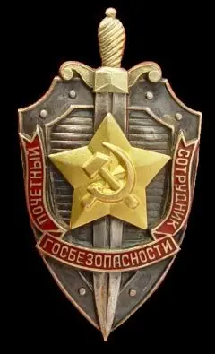 Si lo comparamos con una placa original, veremos la diferencia, donde se puede leer “ПОЧЕТНЫИ СОТРУДНИК ГОСБЕЗОПАСНОСТИ”, que significa: “Miembro de Seguridad de Estado”.