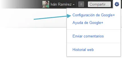 Para ello, haz clic en el engranaje, arriba a la derecha, y presiona Configuración de Google+.