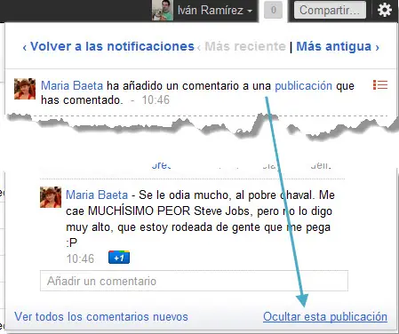 5. Silenciar publicaciones: bloquea el spam en Google+