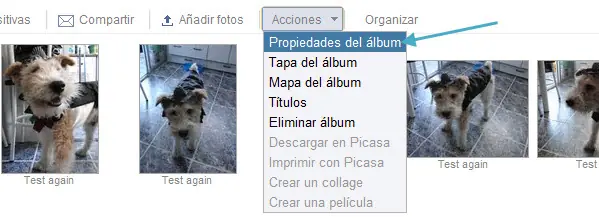 Una vez estás dentro, haz clic en Acciones > Propiedades del álbum.