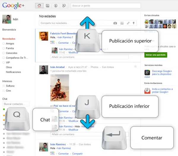 La mayoría de los productos de Google te ofrecen la posibilidad de moverte por ellos con el teclado, y Google+ no es una excepción.