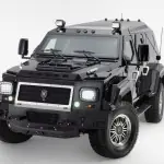Esta ostentosa SUV tiene 6 metros de largo por dos y medio de alto. Tiene un blindaje de nivel 4el cual es movido por un motor Ford de 6.8L V10 con 400 caballos (se usa en las series F).