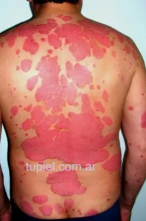 La psoriasis es una enfermedad crónica de la piel caracterizada por placas eritemato-escamosas (aunque hay diversas formas de presentación clínica) y que si bien puede afectar a cualquier sitio de la piel, lo hace más frecuentemente con el cuero cabelludo, codos, rodillas, región lumbo-sacra y uñas. Existen casos, pocos por fortuna, donde también hay afectación ósea. Se calcula que aproximadamente 0.05% al 4.8% de la población mundial padece de psoriasis. Es un padecimiento de origen multifactorial pero con una base genética y una importante participación del sistema inmune.