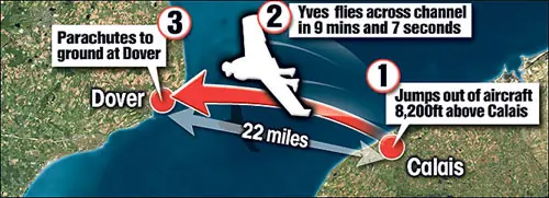 En noviembre de 2006, tras haber desarrollado y mejorado sus alas a reacción, las puso a prueba realizando un vuelo con éxito desde Calais hasta Dover, cruzando el canal de la Mancha.[cita requerida]