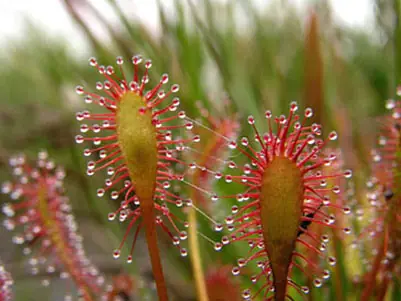Las plantas carnívoras son plantas que mediante la clorofila que poseen pueden formar sustancias orgánicas a partir del anhídrido carbónico y vivir como autótrofas para el nitrógeno, por lo que están capacitadas para capturar y retener pequeños animales, principalmente insectos, que luego, mediante la secreción de enzimas, pueden digerir y absorber, lo que constituye prácticamente su única fuente de nitrógeno. Para la captura de animales, presentan disposiciones variadas. Las hojas de las del género Drosera presentan excrecencias (tentáculos), cuyas cabezuelas glandulares segregan un líquido pegajoso al que quedan adheridos los insectos. Las carnívoras exóticas presentan disposiciones muy adecuadas, como las plantas del género Dionacea, que tienen unas hojas con el semilimbo abierto que dobla en cuanto se posa un insecto encima, aprisionándolo. En otras carnívoras, predomina la forma de ascidia (Nepenthes y Sarracenia), que son hojas transformadas en recipientes urceiformes con un opérculo, llenas de un líquido en el que son digeridos los animales atrapados.