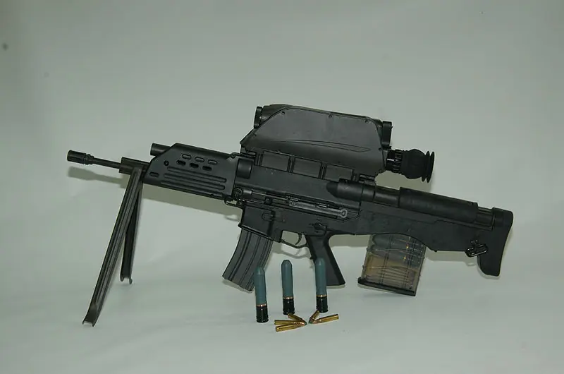 Aparte de la capacidad de disparar 20 a 30 rondas de municiones estándar de 5.56 mm se le puede añadir un lanzagranadas de 20 mm con la cual se puede atacar a diversos objetivos.