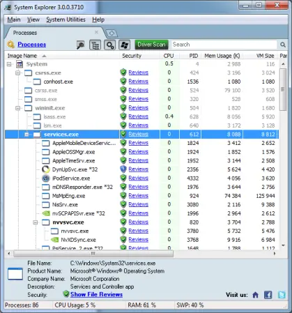 Descripción dijo:System Explorer es un Programa Freeware, ganador de premios por Exploración y gestión del funcionamiento interno del Sistema. Este pequeño Software incluye muchas herramientas útiles que ayudan a mantener tu Sistema bajo control. Con System Explorer Usted también recibís un acceso rápido a archivos de base de datos que ayudan a determinar los procesos no deseados o amenazas. System Explorer es incluye 21 idiomas y está disponible para su descarga en Instalador o Versión Portátil.