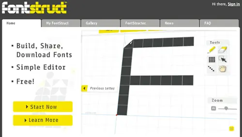 Fonstruct es una potente editor On-Line qute te permite crear de una muy sencilla todo tipo de fuentes, el límite es tu imaginación. Cuenta con un gran número de formas y herramientas. Despues de crear la fuente puedes compartirla y bajarla, también puedes descargar las creaciones de los demás usuarios.