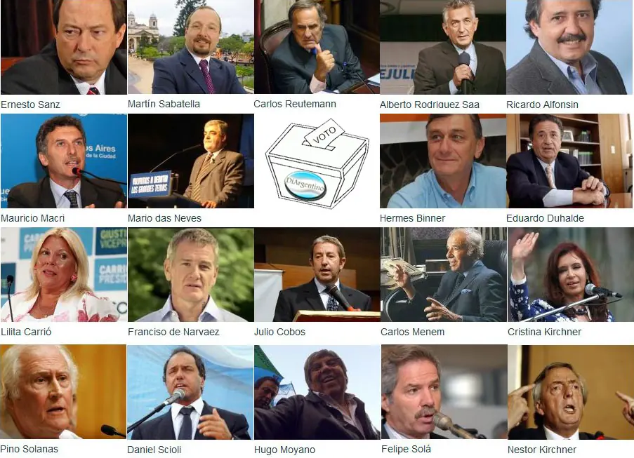 Tres candidatos son de la tendencia peronista, uno es socialdemócrata (Ricardo Alfonsín), un socialista (Hermes Binner) y Elisa Carrio de centroizquierda.
