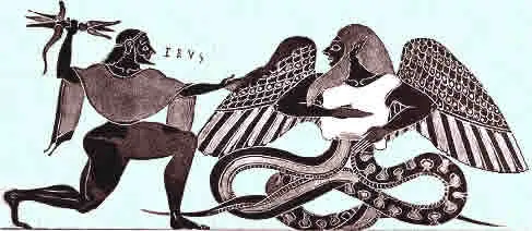 Zeus, en su batalla contra el mounstruo Tifón, al cuál atraparía bajo una montaña.