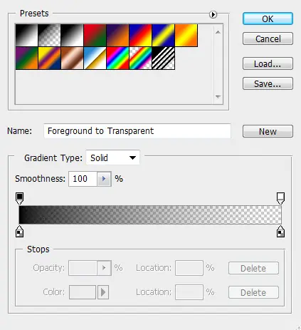 agarrar el relleno de degradado de la herramienta y utilizar las opciones siguientes:
