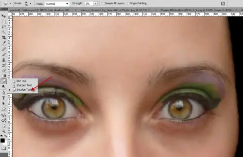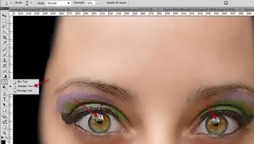 Enfocar los ojos con la herramienta Enfocar - la fuerza establecida en alrededor del 30%: