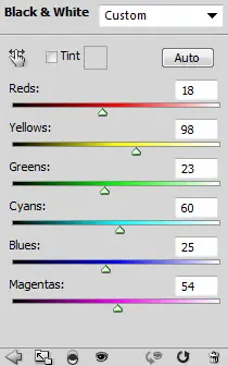 Añadir una capa de ajuste de imagen en blanco y negro en la parte superior de todas las capas anteriores:
