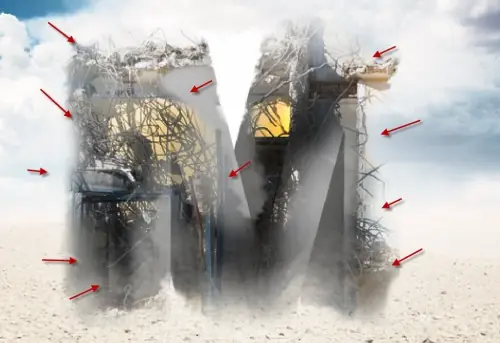Cargar la imagen del edificio destruido en Photoshop, arrastre la selección a la imagen y seleccionar la parte siguiente:
