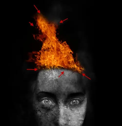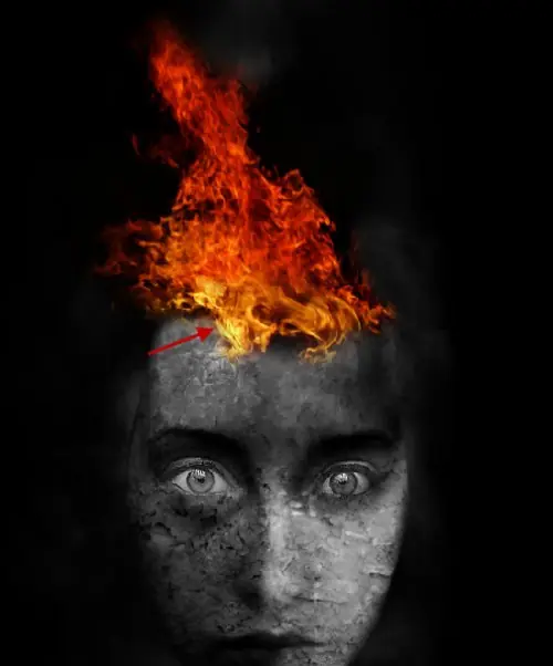 Copia y pega la selección en nuestro documento, que se mueven por debajo de la textura de la llama en primer lugar, a