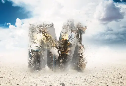 poco de polvo alrededor del texto (ya que es en el desierto).