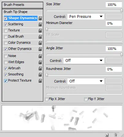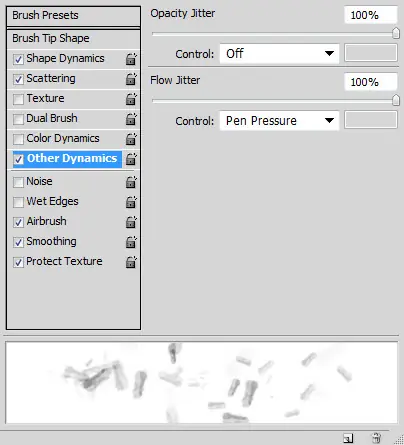 Una vez definida la brocha, aplique la dinámica de pincel siguientes a la misma: