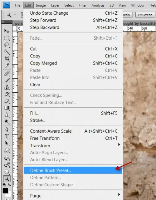 Ir a "Edición> Definir pinceles" y definir un nuevo pincel: