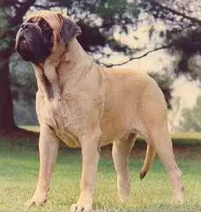 10. Mastiff inglés: Desciende de los antiguos molosos asirios. Precioso auxiliar del hombre y extremadamente apegado a su dueño, desconfiado. Si es atacado resulta terrible. De aspecto masivo y simétrico, el mastiff posee un cuerpo bien construido de características musculosas.