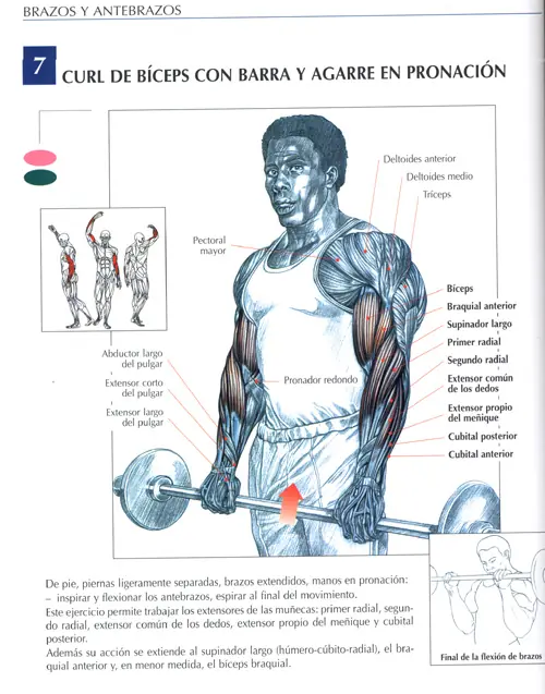 *Mientras que mucha gente prefiere el curl con la barra EZ, el curl con barra recta permite hacer más repeticiones. Sin embargo, debido a que la barra recta propicia una mala postura de las muñecas, es recomendado realizar este ejercicio con ambas barras para evitar lesiones.