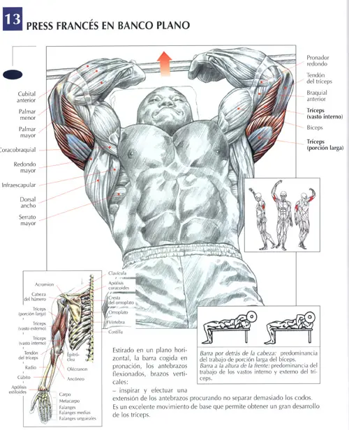 *Si bien la mayoría de las personas hacen este ejercicio con el fin de mejorar sus tríceps, en un estudio en el 2005 se llego a la conclusión que este ejercicio también involucra a los pectorales superiores en un 30% más que el press de banca tradicional.