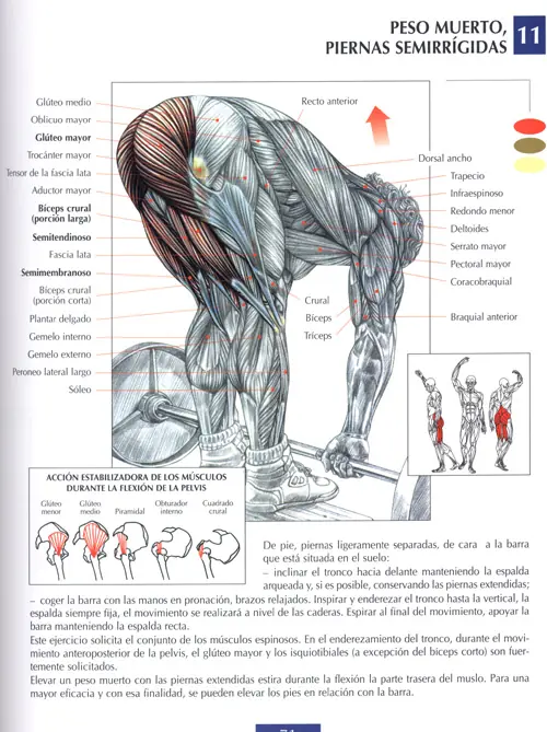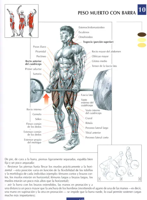 *La versión de peso muerto con barra, al igual que la sentadilla, involucra cientos de músculos. Ya que el cuerpo se tiene que esforzar mucho para lograr este ejercicio, además de que se hace sin asistencia, este permite ganar más fortaleza, la cual no debe de ser confundida con masa muscular.