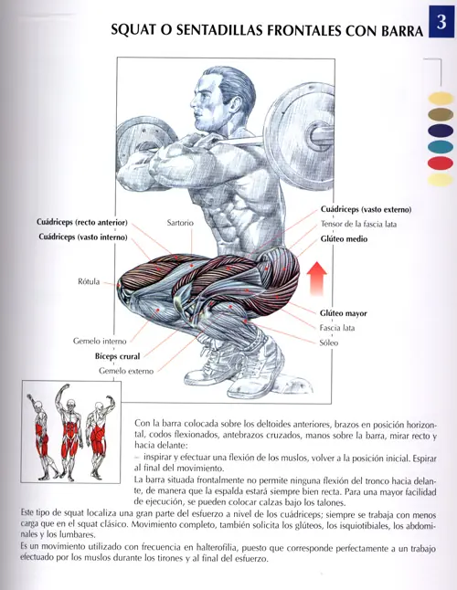 *La sentadilla frontal permite que se utililzen más los músculos de los cuadriceps y glúteos, por lo tanto siendo el mejor ejercicio para ganar masa en las piernas.