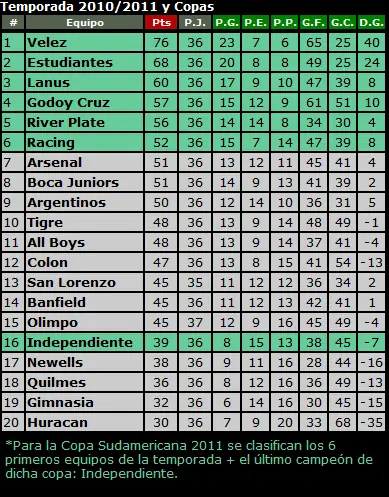 Clasificacion a la Copa Sudamericana 2011