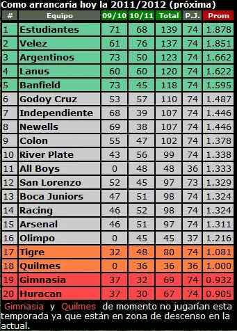 Asi arrancan a falta de una fecha los promedios de la proxima temporada.
