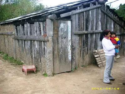 Las viviendas sociales. En el informe se dice que nuestros ranchos "tradicionales " de paja, adobe y palmas las mantenemos junto a las nuevas! No es así. Sólo los punteros políticos tienen viviendas de material, en cambio todos los que protestamos por las condiciones en que vivimos no somos beneficiados.