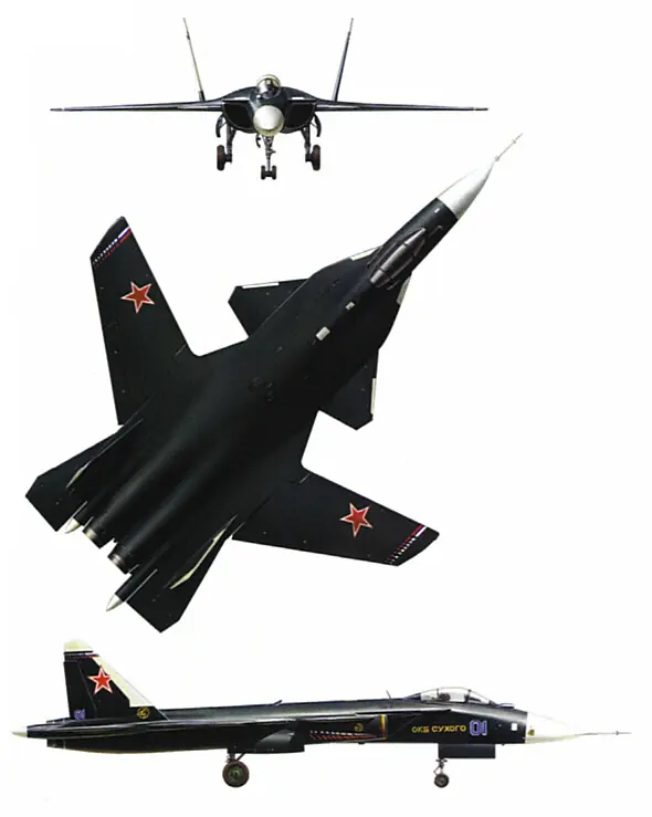 El Su-47 cuenta con dimensiones similares a las de otros aviones de combate diseñados por Sukhoi como el Su-35. Con el fin de reducir costos de desarrollo, el Su-47 utiliza el fuselaje delantero, las colas verticales y el tren de aterrizaje desarrollados para la familia del Su-27. La aeronave además incluye mejoras para reducir su firma de radar, como el uso de materiales absorbentes de las ondas de radar y compartimentos internos para el armamento así como espacio extra para agregar un sistema de radar avanzado. A pesar de ser similar en concepto al avión norteamericano X-29 diseñado en los años 80, el Su-47 tiene casi el doble de tamaño y un diseño más cercano a lo que es un avión de combate moderno.