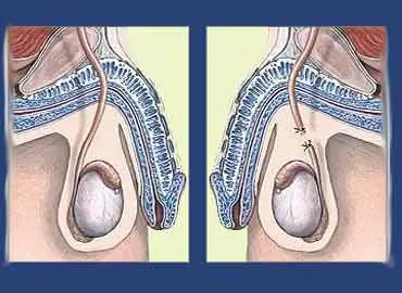 * A través de la “uretra”- el tubo en el pene que transporta los fluidos fuera del cuerpo