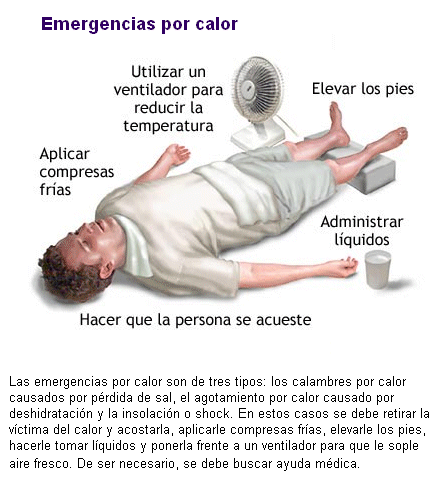 Las personas que realizan alguna actividad cuando hace calor y hay mucha humedad en el medio ambiente pueden sufrir mareo, desvanecimiento y, en casos extremos, estados de inconciencia que requieren atención médica. Su forma más común es ocasionada por sobreexposición al Sol, y se conoce como insolación.