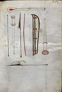 Instrumental quirúrgico representado en una copia del siglo XV del manuscrito de Abulcasis.