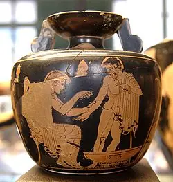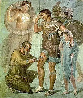 Iapix extrayendo una flecha de la pierna de Eneas, fresco de Pompeya.