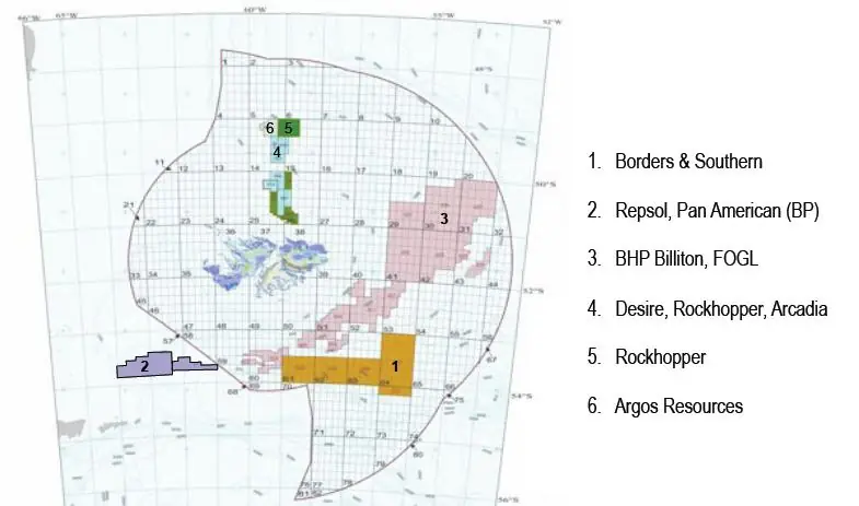 ¿Realmente será una exploración en aguas argentinas por manos argentinas? ¿O acaso será una extensión más de la búsqueda de petróleo británico que ya lleva un año en la zona? Observemos una imagen extraída de un documento de las compañías de petróleo que actúan bajo las licencias otorgados por Gran Bretaña: